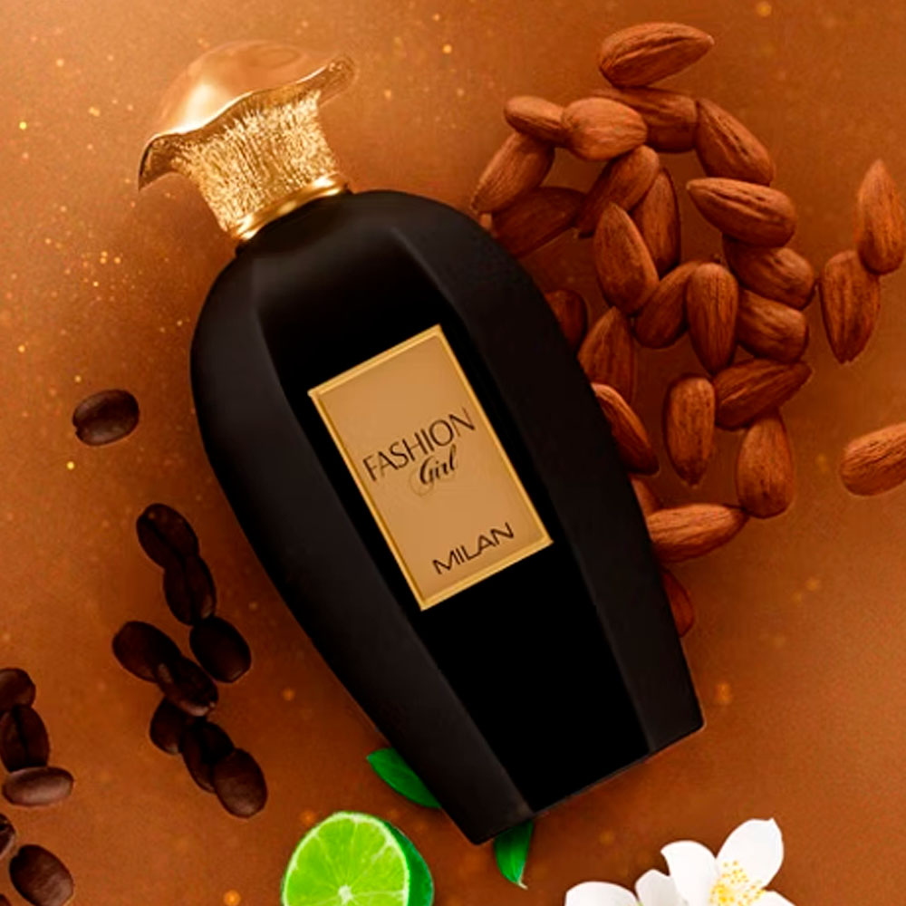 El perfume Fashion Girl, lanzado en años recientes, se caracteriza por ser una fragancia intensa y arrolladora, con notas de salida de almendra, café, bergamota y limón.