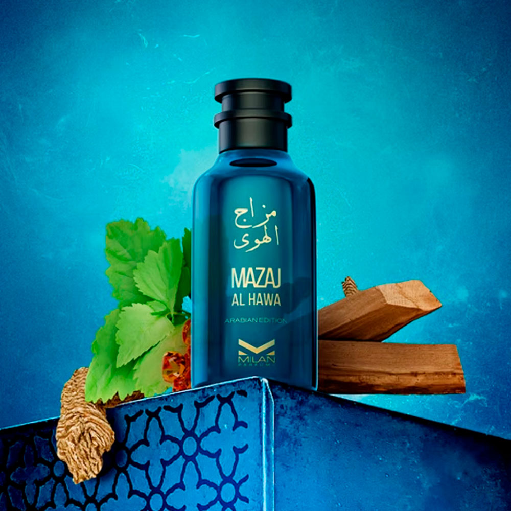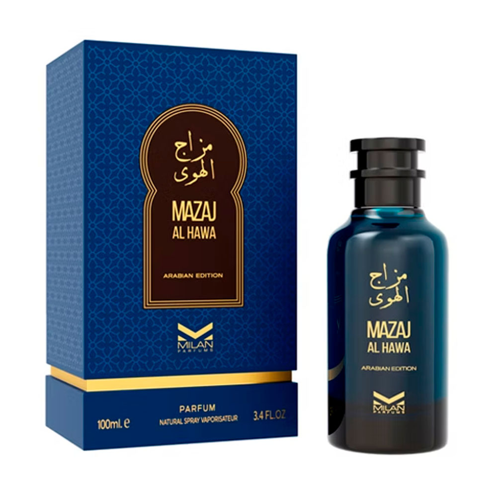 Mazaj Al Hawa es una fragancia aromática masculina intensa y seductora, caracterizada por una mezcla exótica y amaderada. Sus notas destacadas incluyen nuez moscada, canela, cardamomo y toronja en la salida, un corazón de lavanda, y un fondo profundo de regaliz, sándalo, ámbar, pachulí y vetiver de Haití.