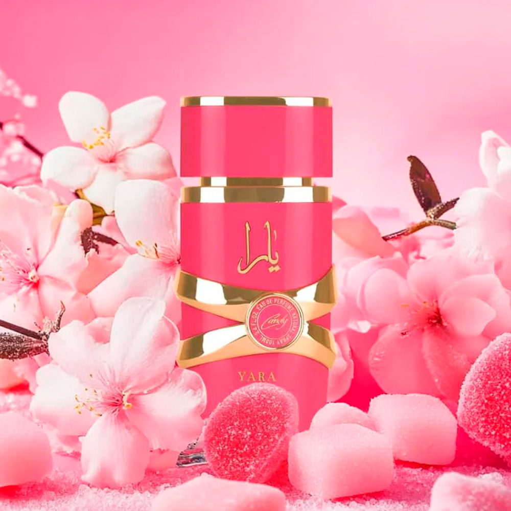 Yara Candy es una fragancia Floral Frutal Gourmand para mujer, destacada por ser muy dulce, juvenil y vibrante.